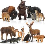 • ✔ FOREST ANIMALS BIG PARTY – 12PCS North American Animal Playset includes 1 Moose, 1 Wapiti, 1 Pronghorn, 1 Black Bear, 1 Brown Bear, 1 American Bison, 1 Wolf, 1 Eagle, 1 Lynx, 1 Raccoon, 1 Alligator, 1 Cougar. Kids would like to have a party with different varieties of safari animal figurines.